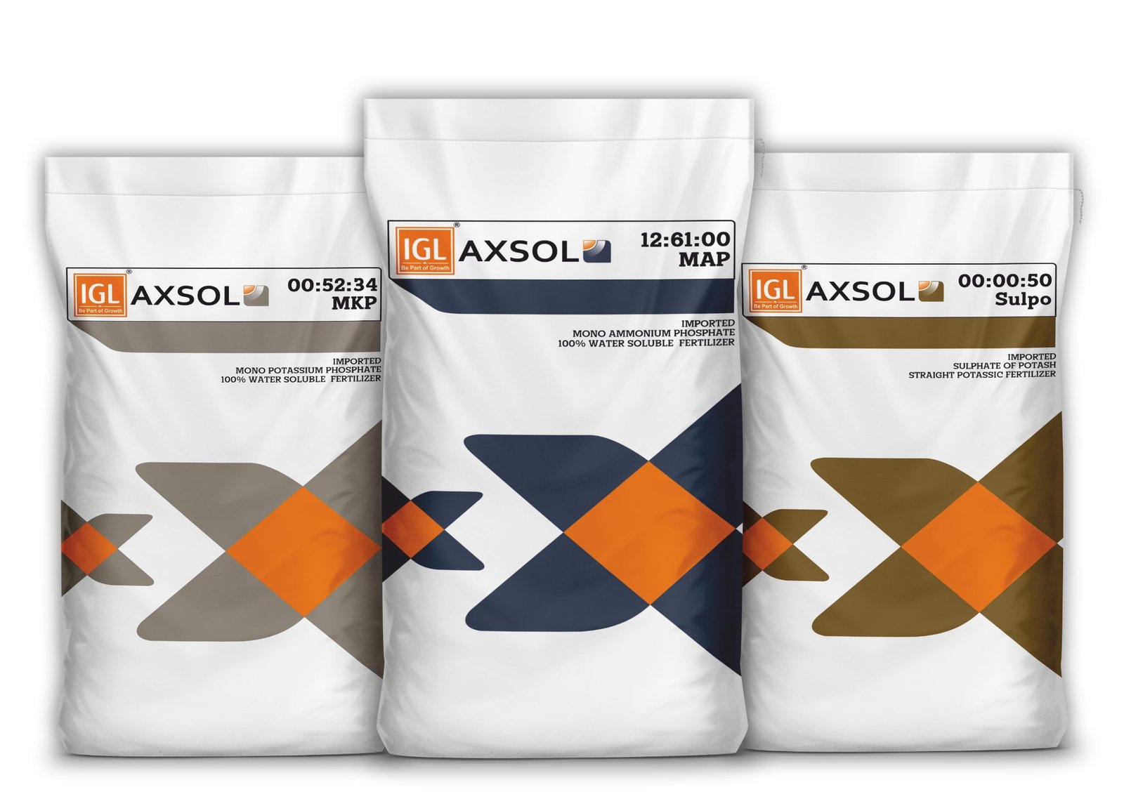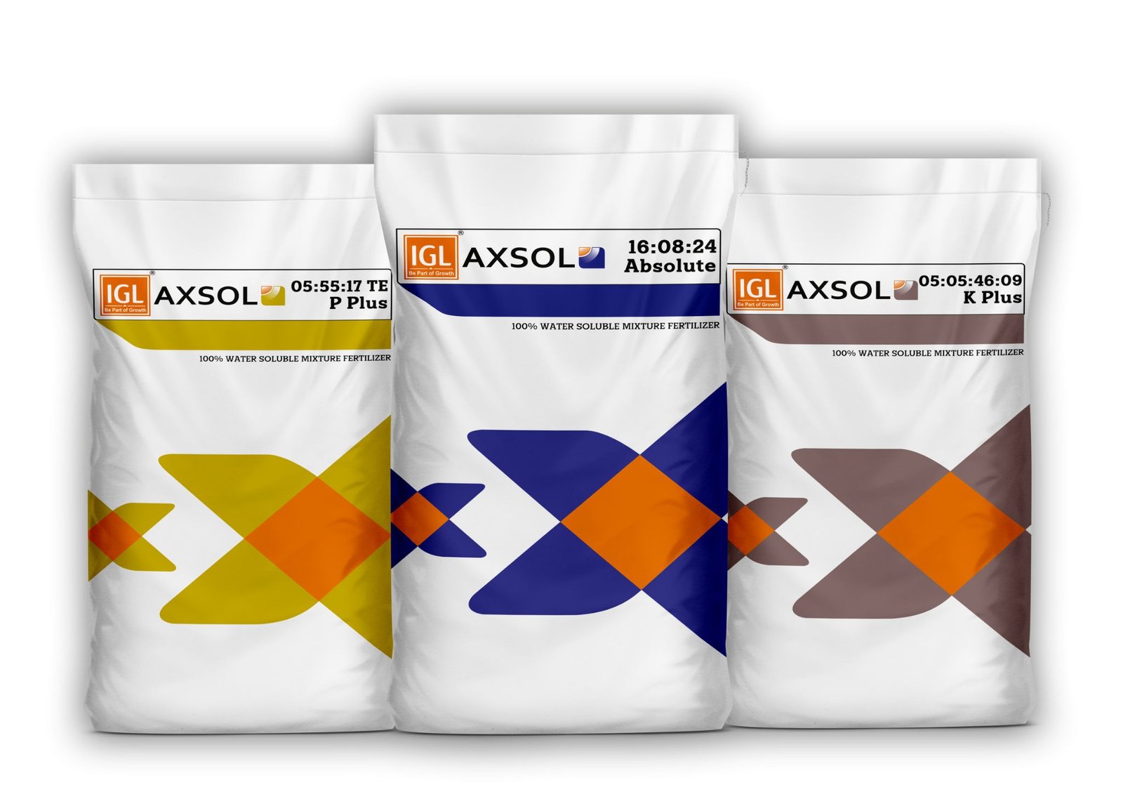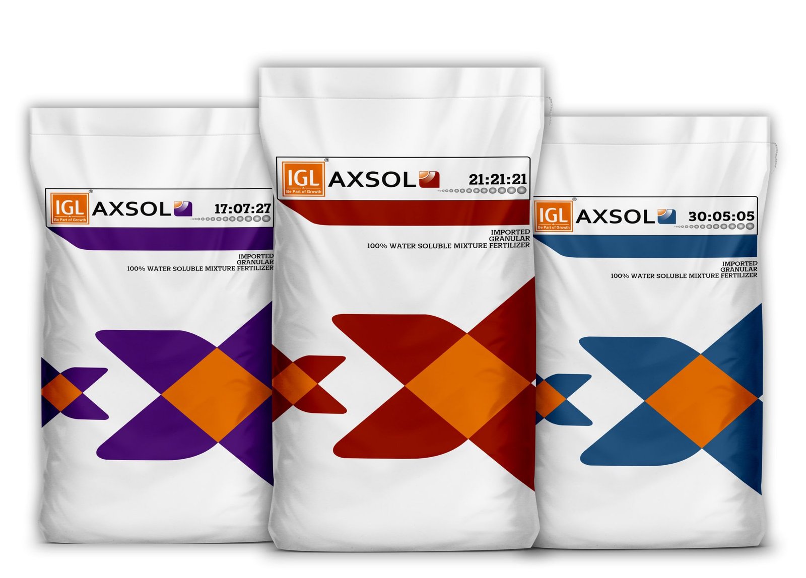 IGL AXSOL is a new range of water soluble NPK fertilizers for fertigation and premium alternative to conventional fertigation fertilizers, designed for horticultural crops irrigated by drip, sprinkler and foliar application.